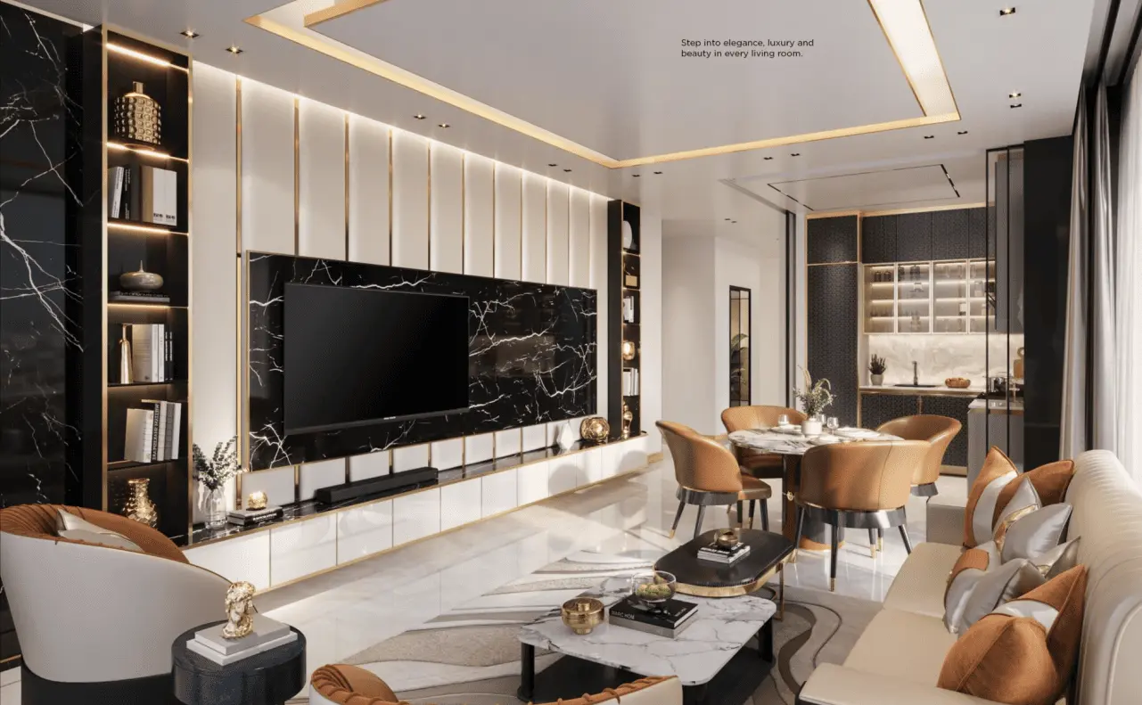Inside, the apartments are designed with luxury and space in mind. High-end materials, premium finishes, and state-of-the-art fixtures are used throughout, ensuring that every aspect exudes quality and style. The floor-to-ceiling windows allow for plenty of natural light, creating bright and airy spaces that feel expansive and inviting.